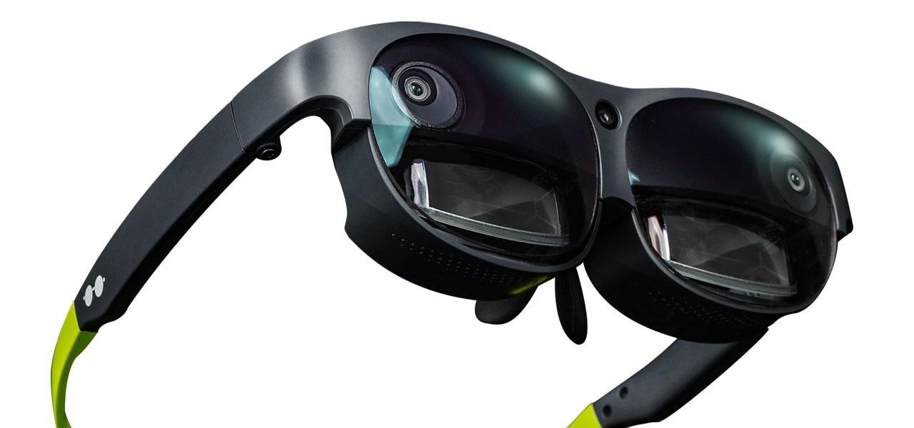 Новинка очень похожа на nReal Light. Разработчики оснастили её тремя камерами, две из которых расставлены в окулярах и придают человеку немного комичный вид, зато имеют хорошую обзорность, а третья — RGB — расположилась над переносицей.