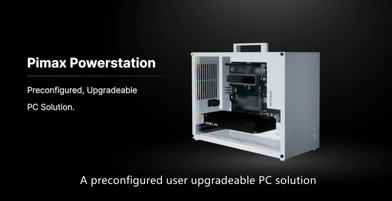 На этом плеяда анонсированных продуктов не закончилась. Китайцы пообещали выпустить полноформатный компьютер для виртуальной реальности Pimax Powerstation. Этот — не портативный и с отдельной видеокартой. На презентации в рендере его корпуса (почти всё здесь было в рендерах) можно было различить надпись GeForce RTX. Сразу за Powerstation спикер рассказал, что компания вообще-то ратует за облачный гейминг.