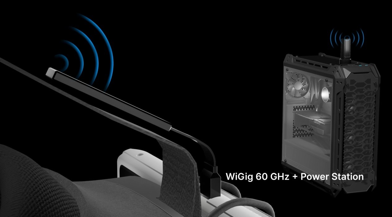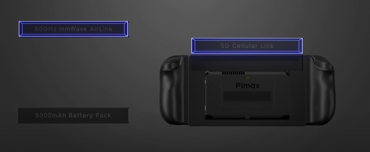 Что касается связи, устройство имеет поддержку Wi-Fi 6E, предполагается выпуск дополнительных модулей 5G для мобильных сценариев и WiGig для более стабильной и быстрой домашней трансляции без проводов (он также будет работать с очками линейки Reality). Есть Bluetooth 5.1 и порт USB-С. Порт miniHDMI позволяет подключать Portal к компьютеру для трансляции игр виртуальной реальности на основе SteamVR по технологии Pimax Link. Кабель оригинальной конструкции.