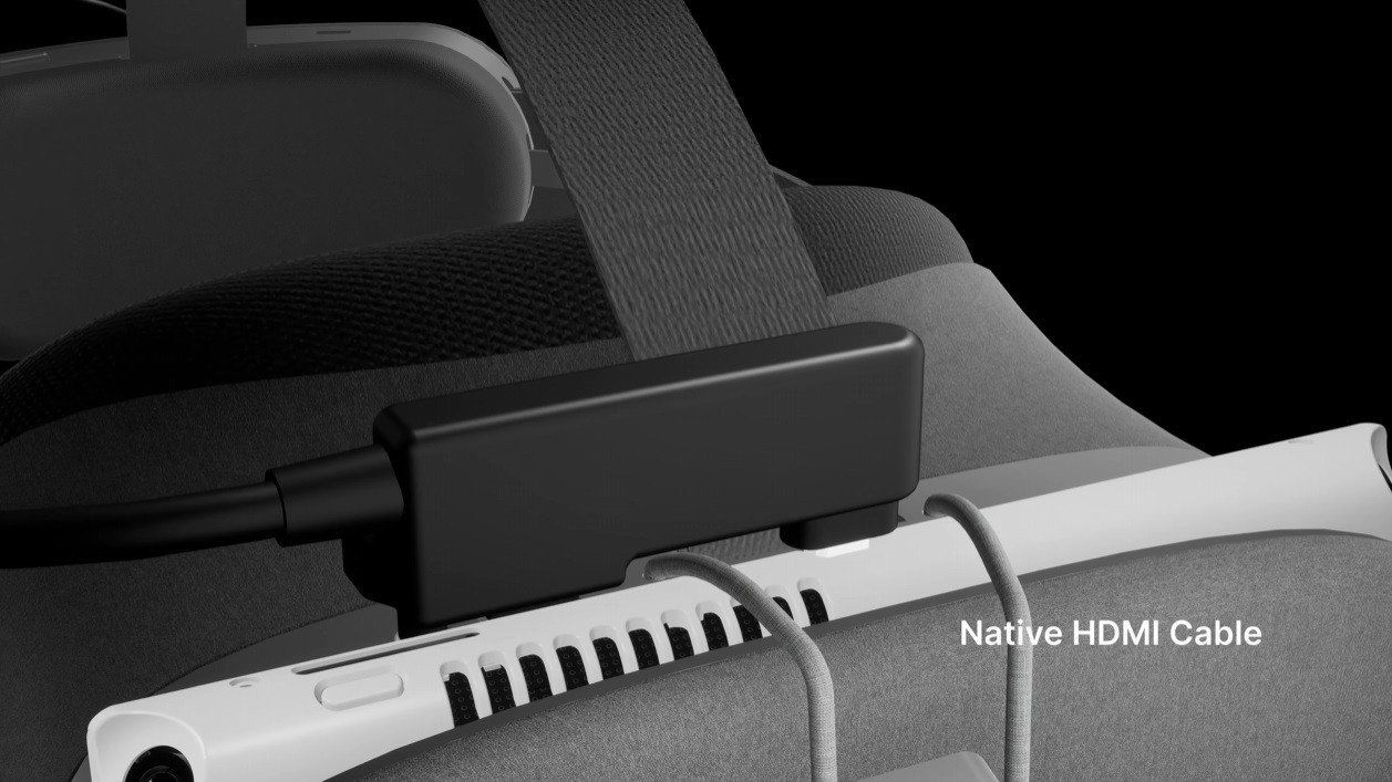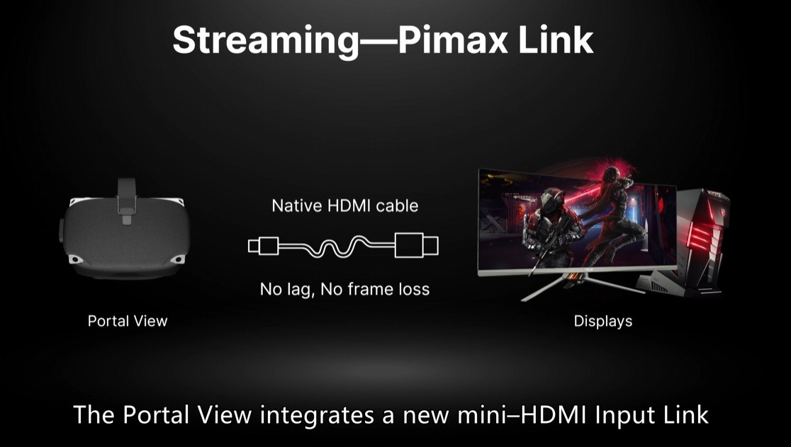 Что касается связи, устройство имеет поддержку Wi-Fi 6E, предполагается выпуск дополнительных модулей 5G для мобильных сценариев и WiGig для более стабильной и быстрой домашней трансляции без проводов (он также будет работать с очками линейки Reality). Есть Bluetooth 5.1 и порт USB-С. Порт miniHDMI позволяет подключать Portal к компьютеру для трансляции игр виртуальной реальности на основе SteamVR по технологии Pimax Link. Кабель оригинальной конструкции.