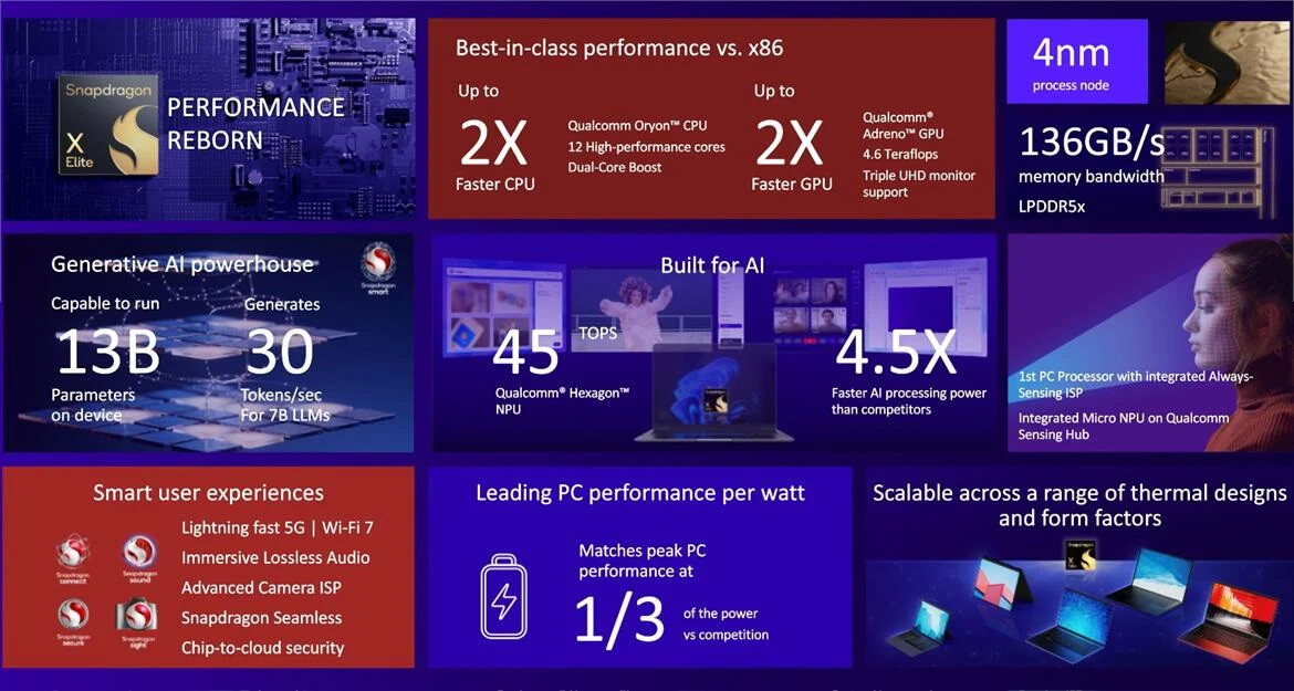 Новый XR-чип должен значительно отличаться от всех прочих, чтобы покупатели понимали, для чего он им нужен. Раз Сварт говорит, что новинка станет самой мощной, единственным донором для неё может стать один из вариантов в линейке Snapdragon X. Это свежепредставленное семейство процессоров для ноутбуков, которое Qualcomm сравнивает с M от Apple. Купертинцы применяют в Vision Pro именно M, а не смартфонные A.
