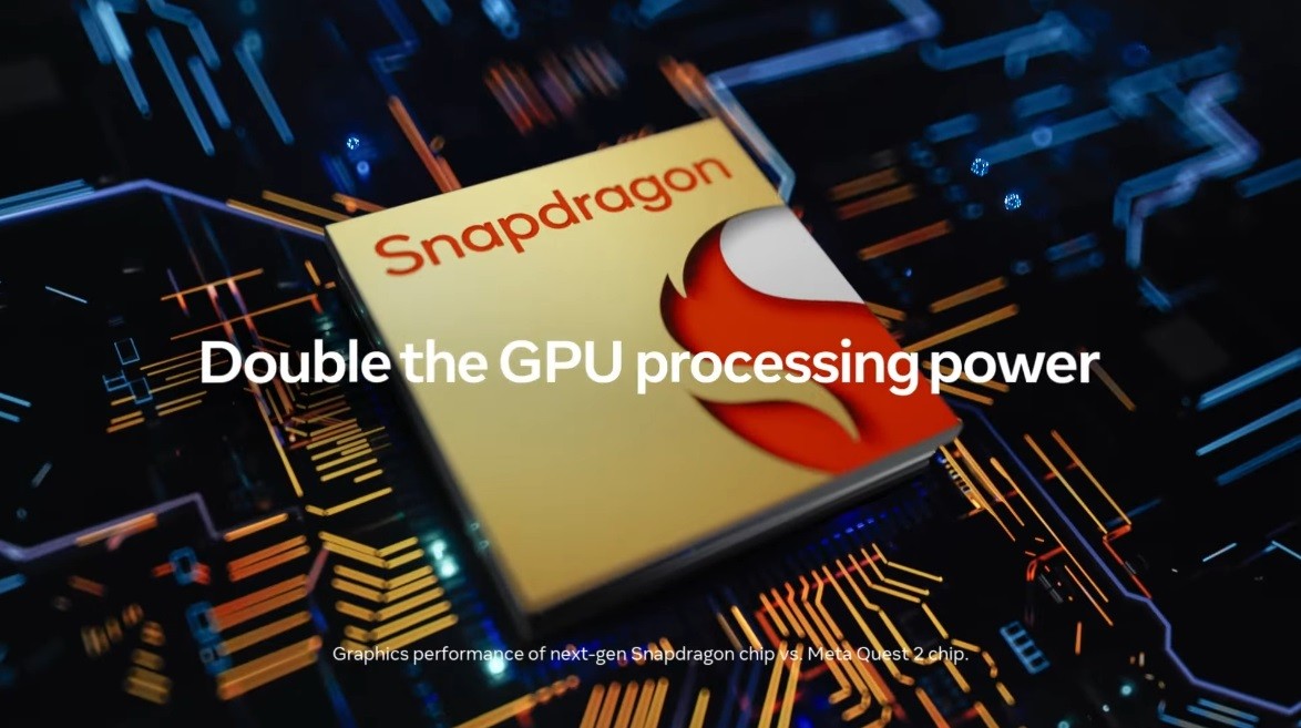 Утечки чертежей в прошлом году оказались правдивы, как и информация о том, что графика новинки будет вдвое мощнее, чем в Quest 2. Причиной тому новый процессор от Qualcomm. Meta не раскрывает его, но сейчас с максимальной уверенностью можно говорить, что это будет Snapdragon XR2 Gen 2 с графикой Adreno 740. В его основу ляжет Snapdragon 8 Gen 2.