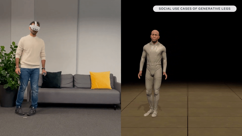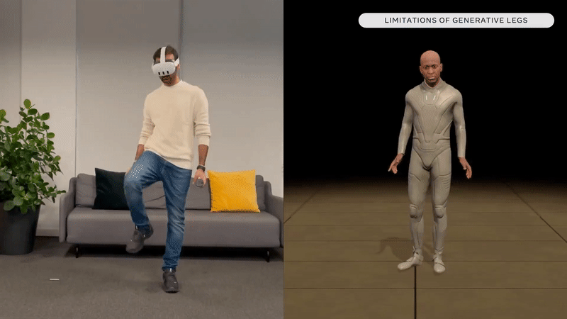 На Quest 3 Generative Legs обеспечивает более реалистичную оценку, чем на старых моделях очков, благодаря использованию в качестве входных данных отслеживания верхней половины тела, но технология работает и в Quest Pro, и в Quest 2 на базе положения головы и рук.
