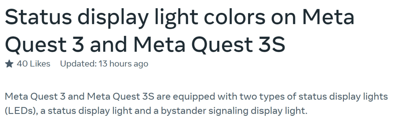 Статья поддержки «Полноцветный сквозной режим на Meta Quest» описывала действие новой кнопки. Она заменяет привычное двойное постукивание. Этот орган управления как будто закрепляет статус смешанной реальности на устройстве. Вторая статья ссылалась на очки в контексте статусных светодиодов.