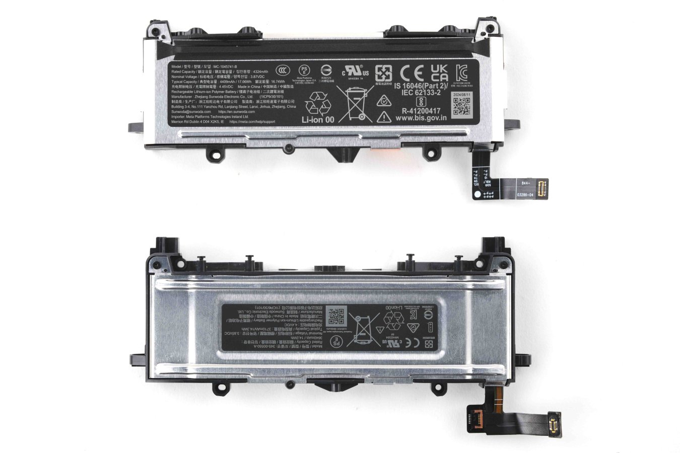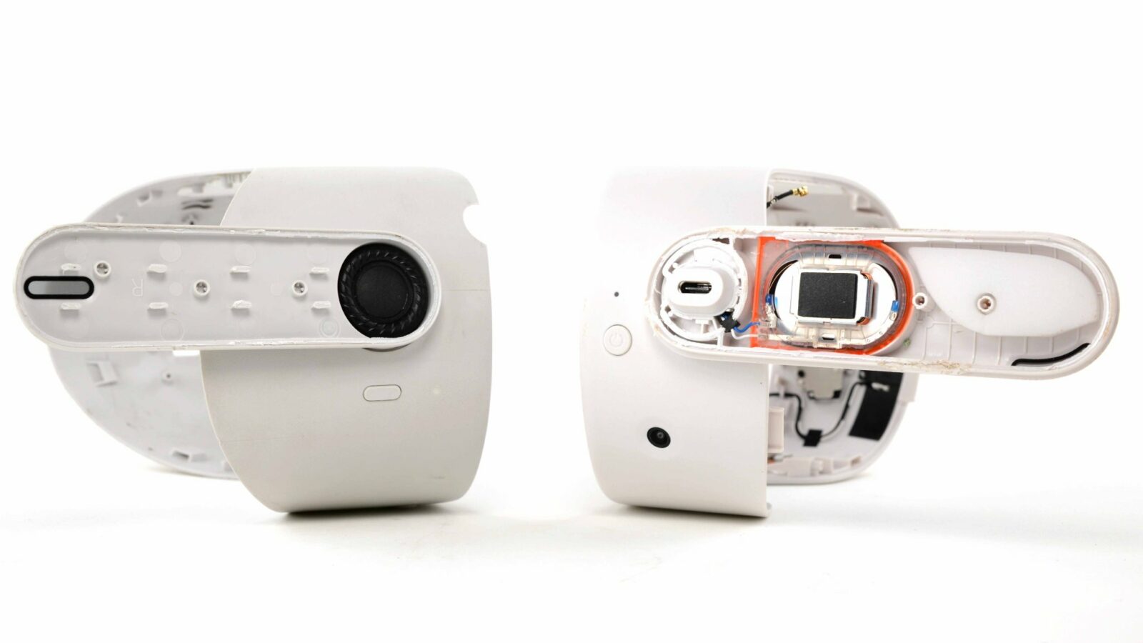 Гибкий кабель и соответствующие разъёмы, которые проходили от центра очков и через аккумуляторную батарею, исчезли. Корпус аккумулятора сохранил ту же конструкцию, что и раньше, но сам разъём аккумулятора стал другим из-за отсутствия питания датчика приближения. Quest 3S, похоже, пользуются таймером автоматического отключения, что упростило конструкцию и решило неприятную проблему.