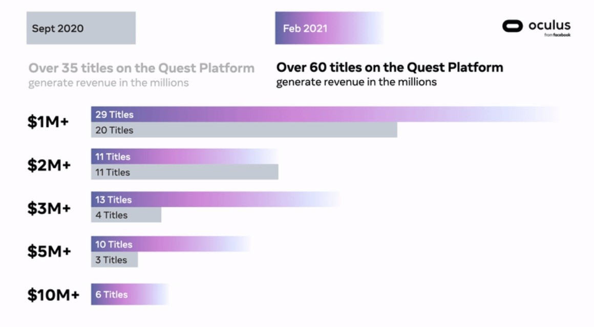 Запуск Oculus Quest 2 стал благом как для Facebook, так и для разработчиков, поскольку мобильные очки помогли заработать по миллиону долларов владельцам более чем 60 игр.