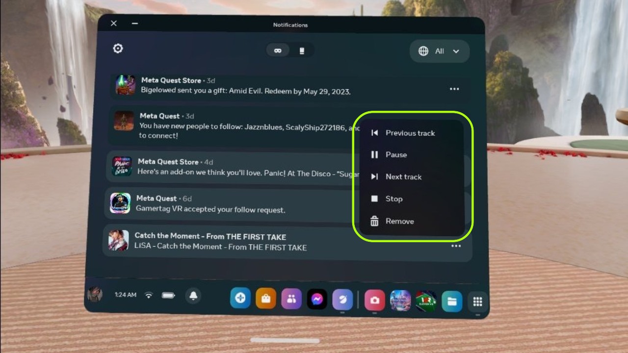 Похоже, Meta* хочет добавить в Quest фоновое воспроизведение звука вместе с классическими элементами управления мультимедийным контентом. Участники Public Test Channel, тестирования предварительных версий новых сборок операционной системы, обнаружили новую функцию и поделились скриншотами и видео.