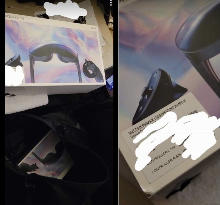 В интернете появились фотографии и видеозапись, на которых запечатлены очки Quest Pro в полном комплекте с упаковкой и контроллерами. На коробке есть надпись «Не для перепродажи — инженерный образец». Автор материалов Рамиро Карденас (Ramiro Cardenas) утверждает, что нашёл коробку забытой в отеле, в котором он работает. По интересному совпадению, Рамиро также является малоизвестным стримером с уклоном в виртуальную реальность.