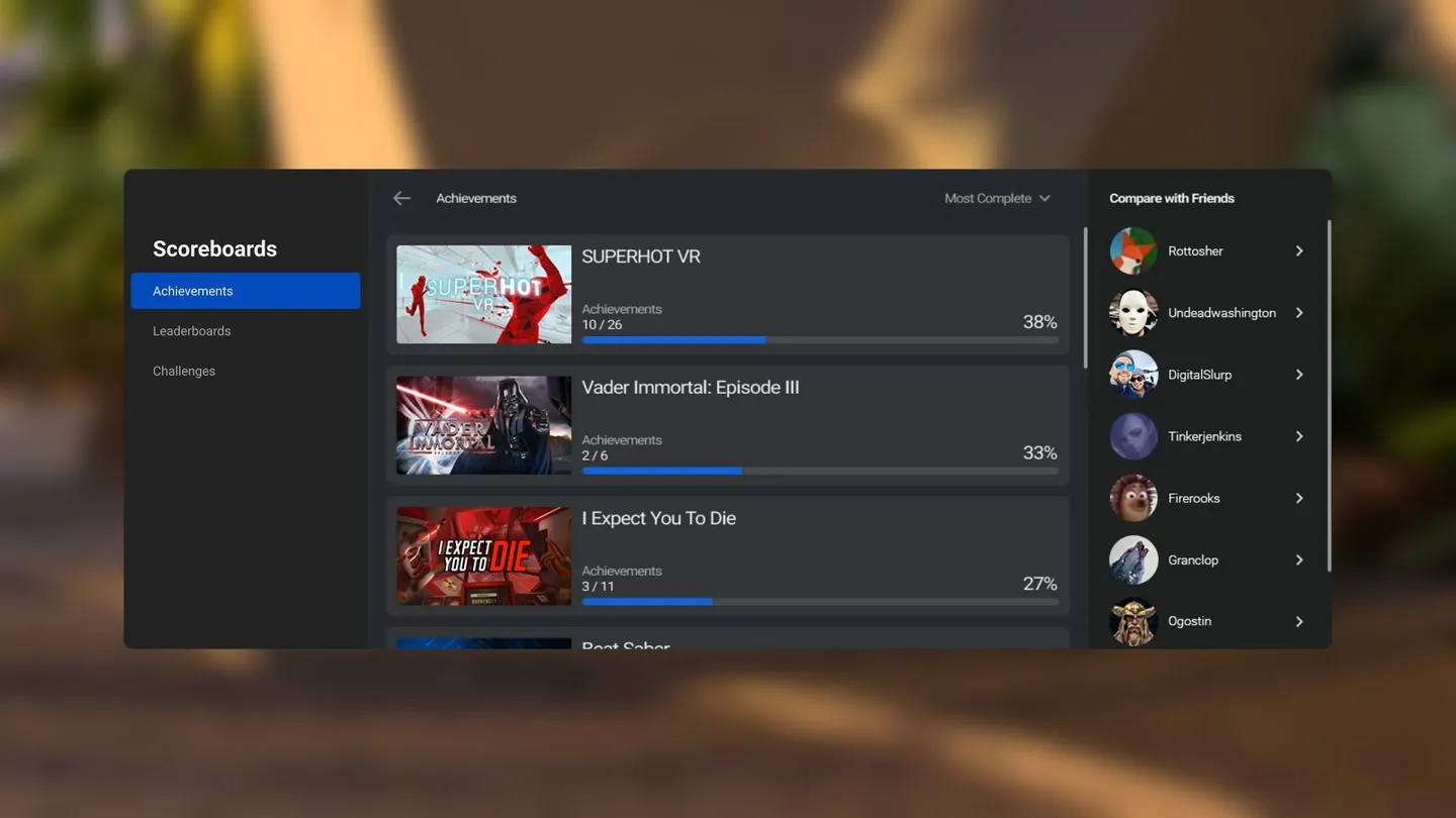 Мы хотим сообщить вам, что 20 декабря 2024 года приложение Meta Quest Scoreboards будет закрыто и больше не будет доступно на Quest. Прекращение работы приложения Meta Quest Scoreboards не повлияет на другие функции таблиц рекордов или достижения, интегрированные в ваш пользовательский профиль и другие интерфейсы Quest. Вы по-прежнему сможете отслеживать свои очки и достижения с помощью этих функций.