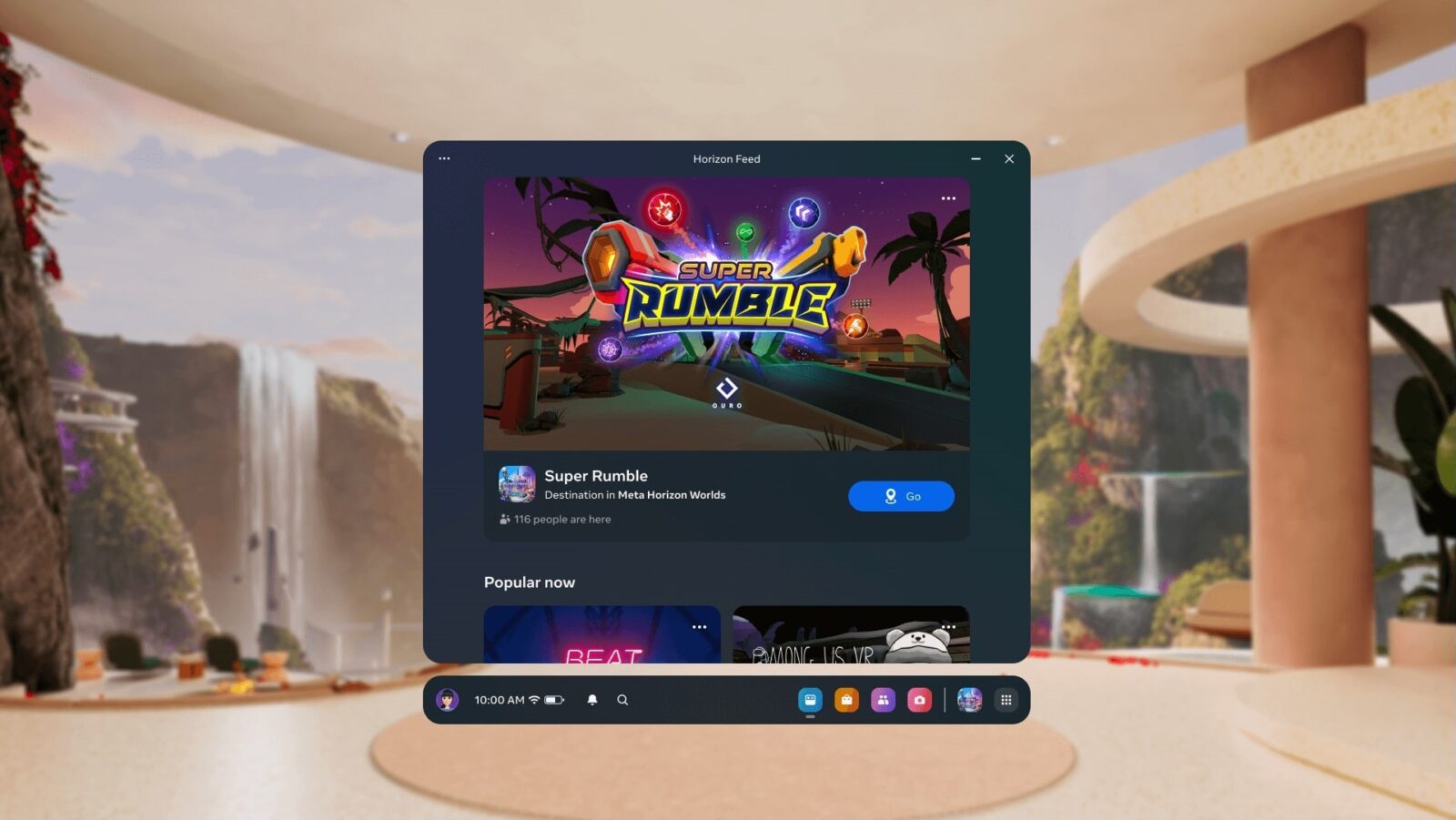 Раньше при надевании Quest нас приветствовал экран предложений и событий Explore. В апдейте 57 его заменили на Horizon Feed. Это продолжение перевода системных функций очков на рельсы социальной платформы Horizon. Раньше по ним приехали профиль, домашнее окружение, группы, миры, а теперь к ним присоединился стартовый экран.