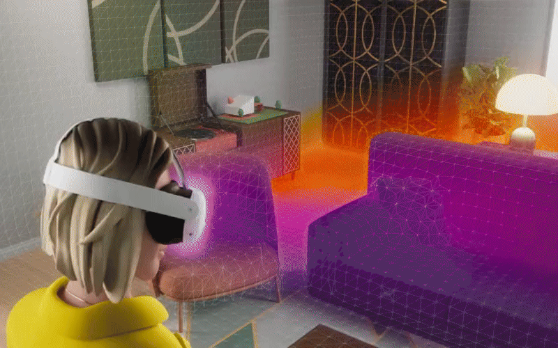 Quest 3 поддерживают смешанную реальность с контурами комнаты. При использовании приложения, которое её поддерживает, система предложит осмотреть комнату, чтобы выполнить сканирование в трёхмерной сетке, если это не было сделано ранее.