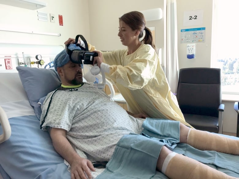 47-летний Грейдон Катбертсон (Graydon Cuthbertson), пациент больницы общего назначения Рокивью в канадском городе Калгари, почти потерял ноги из-за компартмент-синдрома. Он прошёл много операций, а при смене повязок его ощущения варьируются от дискомфорта до мучительной боли. Но на этот раз разум Грейдона в другом месте — в виртуальном кемпинге на берегу озера, где нет места болезни: