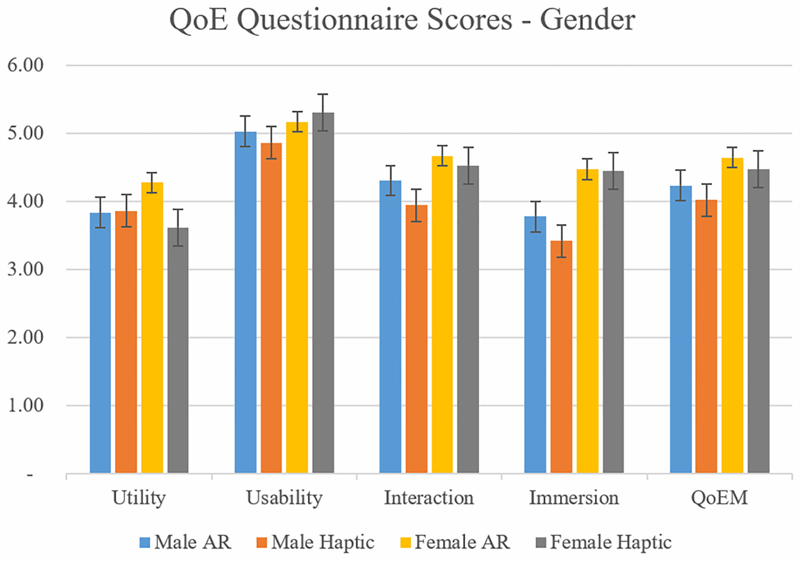 Результаты показывают статистически значимые более высокие оценки дополненной реальности. С ней уменьшилось количество смещений коленного сустава (улучшение на 35% относительно базовой линии по сравнению с тактильной отдачей). Гендерный анализ показал значительные различия в производительности по количеству смещений и времени исправления смещения вальгуса. Женская группа сообщила о более высоком уровне полезности дополненной реальности по сравнению с мужской.
