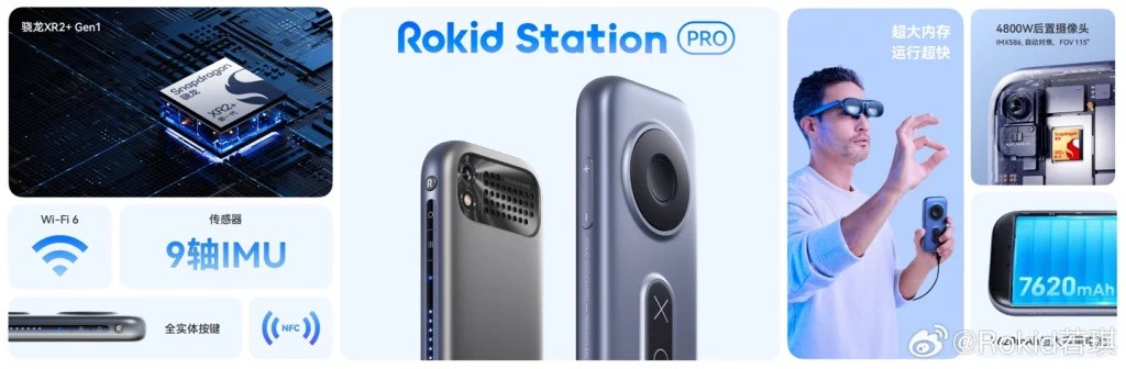 Rokid Station Pro при розничной цене в ¥3999 (около ₽52 000) с процессором Qualcomm Snapdragon XR2+ Gen 1 предлагает 12 гигабайт оперативной памяти LPDDR5 и 128 гигабайт на накопителе.