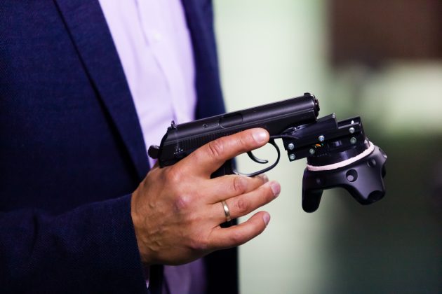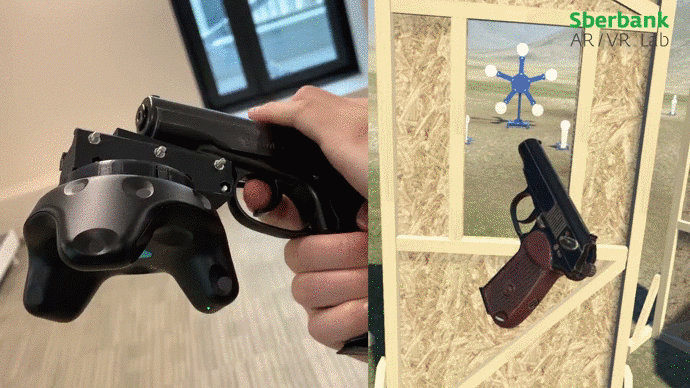 С помощью симулятора можно проводить занятия по стрельбе в виртуальном тире. Условия максимально приближены к реальной обстановке тира или полигона. В ходе соревнований в качестве контроллеров применяется оружие, по весу, механическим и баллистическим характеристикам соответствующее настоящему. За его трекинг отвечают модули SteamVR Tracker.