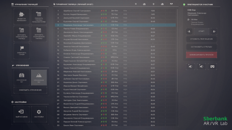 В Центре управления наличным денежным обращением Сбербанка прошли корпоративные ВР-соревнования по тактической стрельбе среди подразделений инкассации и службы безопасности банка. В них приняли участие сотрудники 11 территориальных банков в составе организации. Специальный симулятор — это собственная разработка Лаборатории дополненной и виртуальной реальности Сбербанка и его Службы инкассации.