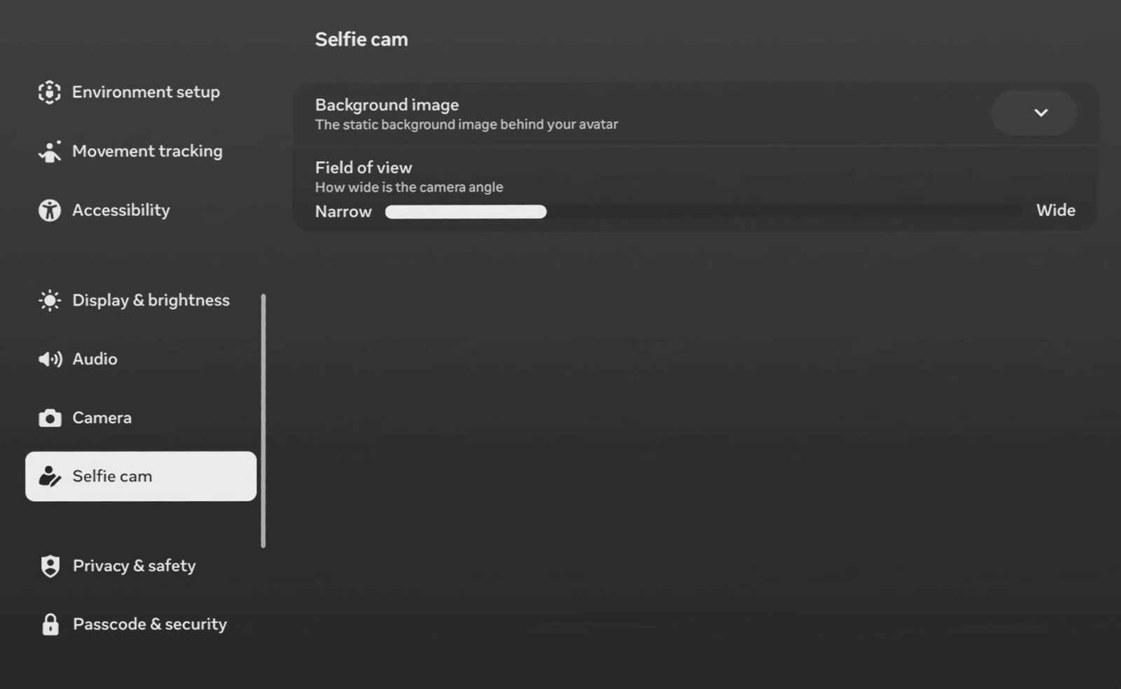 Последняя тестовая сборка операционной системы Horizon OS v76 использует API лежащей в её основе Android для доступа к селфи-камере, давая приложениям виртуальный видеопоток с аватаром. Он может двигать головой, руками и губами, которые в отсутствие специальных камер анимируются по звуку голоса пользователя. Вместе с этим в настройках появилась вкладка селфи-камеры с возможностью замены фона и изменения виртуального поля зрения.