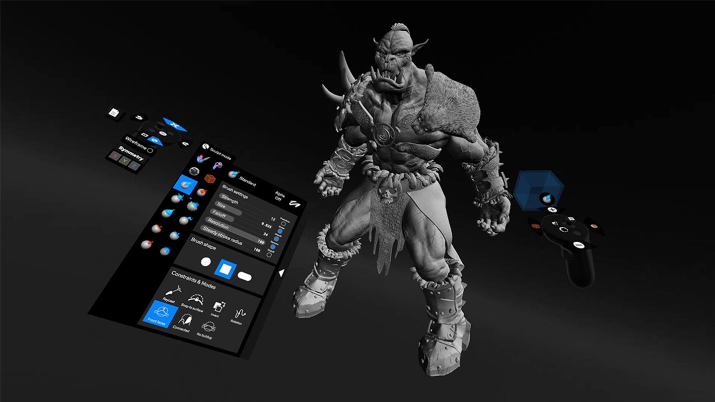 Основные функции — это полигональная сетка для точного моделирования и динамическая топология для корректировки деталей на лету путём тесселяции или прореживания полигонов. Для виртуальной реальности инструментарий готов полностью благодаря соответствующей адаптации интерфейса к ВР-контроллерам.