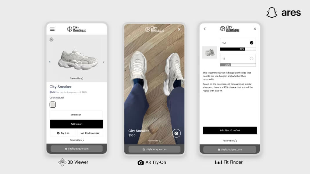 За последние несколько лет Snap позволила брендам создавать профили в Snapchat, внедрила фильтры дополненной реальности, привязанные к продуктам брендов, разработала способы совершения покупок в своём мессенджере. Компания приобрела проект технологии оценки размеров Fit Analytics, стартап по 3D-рендерингу для ритейла Vertebrae и создала творческую студию под глобальным брендом под названием Arcadia, которая помогает брендам внедрять дополненную реальность в индивидуальном порядке. ARES объединяет и автоматизирует эти технологии и услуги в попытке поставить их на конвейер.