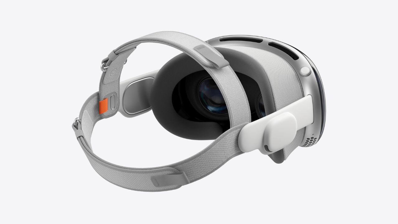 Обычно ободок без верхнего ремешка могут позволить себе разработчики либо более лёгких очков, либо со сравнимым весом, в котором часть приходится на уравновешивающий аккумулятор на затылке. У Vision Pro противовеса нет, батарея пристёгнута кабелем, как обычный мобильный пауэрбанк.