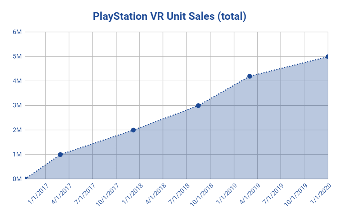 Вы разрабатываете приложение для PlayStation VR. Какова его потенциальная аудитория? Посчитать этот важнейший показатель помогла Sony. Во время CES 2020 японская корпорация отрапортовала о пяти миллионах проданных очков PS VR. Очень вероятно, что это также делает гаджет самыми массовыми проводными очками на мировом рынке.