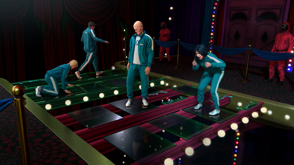 Squid Game Virtuals делит геймеров на две группы по шесть человек. Очки переносят их в знаковые места из сериала, где они соревнуются в различных заданиях, включая «Красный свет, зелёный свет» и «Стеклянный мостик». Netflix и Sandbox VR также подготовили «неожиданные новые повороты», которые расширяют вселенную сериала.