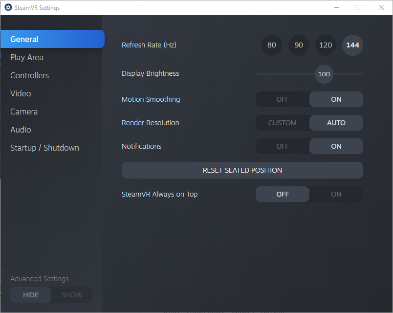 Пользователи Index теперь могут дополнительно  увеличить яркость очков, а также изменить частоту обновления дисплеев без перезапуска SteamVR (при условии, что очки обновлены до последней версии, а драйверы NVIDIA — до версии 441 или более поздней.