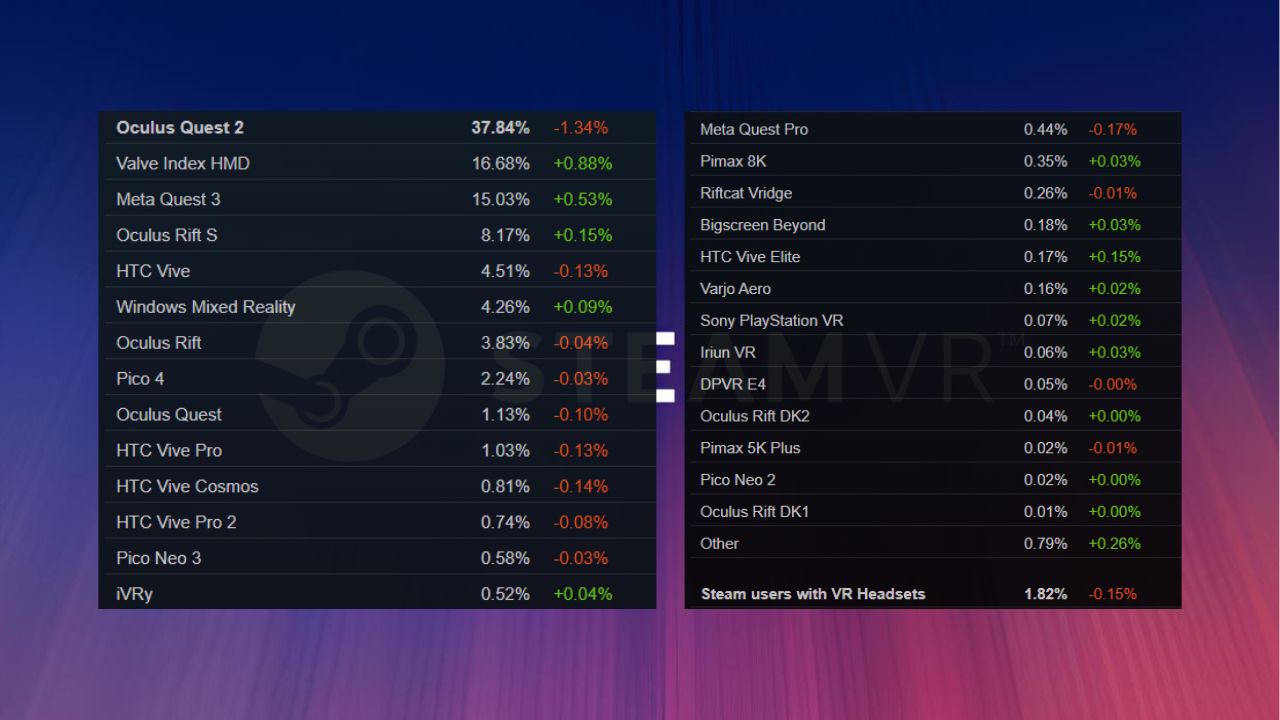 Страница статистики Steam, Steam Hardware Survey, показывает процент пользователей магазина, которые каждый месяц хотя бы раз подключают очки к SteamVR. В марте этот показатель составил 1,82% по сравнению с 1,97% в феврале.
