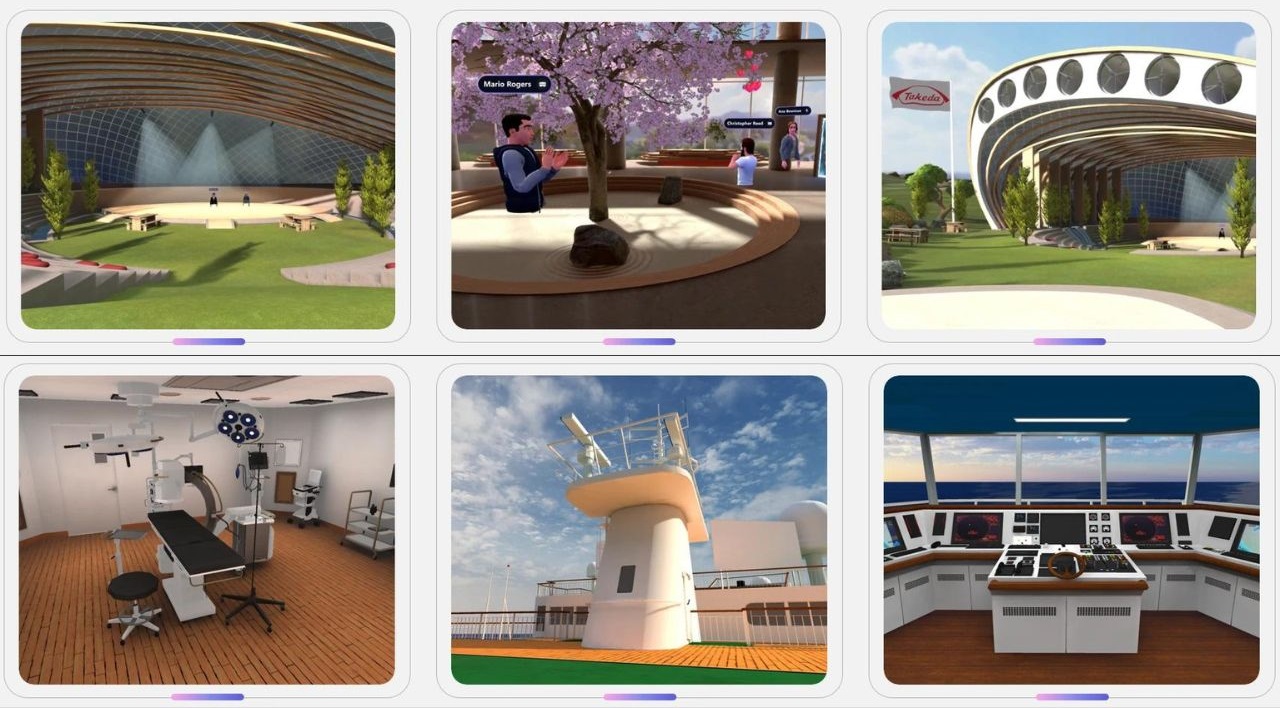 Из вышеописанного вытекает другое преимущество: в отличие от собраний во многих других инструментах, коллектив здесь делится на группы, расходясь по локации, и одновременно выполняет, скажем, мозговые штурмы. У пользователей также есть возможность ввести в метаверс контент для общего использования, показывать что-то локальное, общаться в текстовом чате и выражать эмоции реакциями.