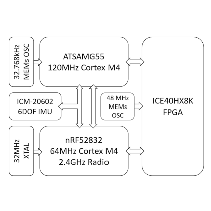 В модуле два процессора ARM Cortex M4, FPGA и блок инерциальных измерений с шестью степенями свободы. Достаточно добавить источник питания, оптические датчики, а также USB- или радиочастотное соединение.