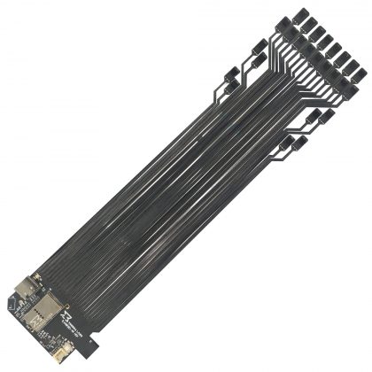 Модуль оснастили контактными площадками для подключения до 32 оптических датчиков, а также GPIO, который может выступать в качестве цифрового ввода и вывода для тактильного управления, аналогового ввода и многочисленных шинных интерфейсов, включая SPI, I2C и UART. Эти интерфейсы ввода-вывода можно использовать для подключения кнопок, датчиков межзрачкового расстояния или периферийного микроконтроллера для передачи данных на компьютер.