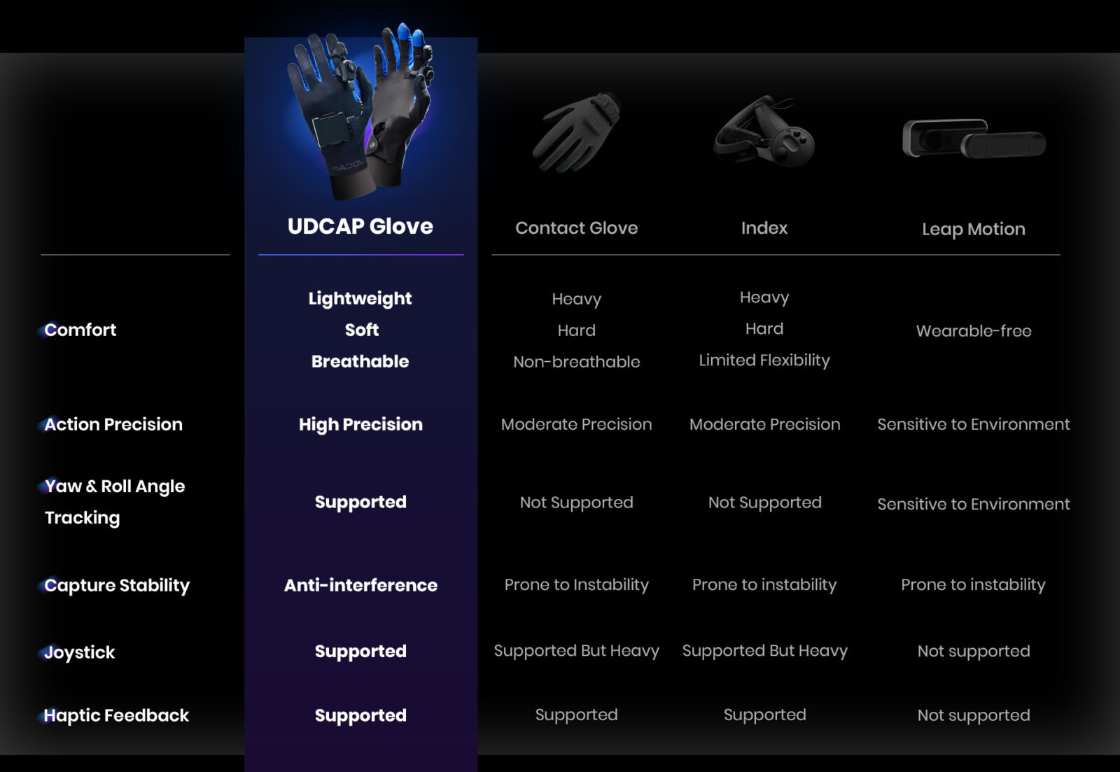 Компания UDEXREAL из Поднебесной спустя несколько лет разработки датчиков растяжения для носимой электроники в виде одежды представила перчатки-контроллеры для виртуальной реальности UDCAP. Тканевый гаджет с небольшими пластиковыми накладками весит 45 граммов и может предложить отслеживание по 42 точкам сочленения.