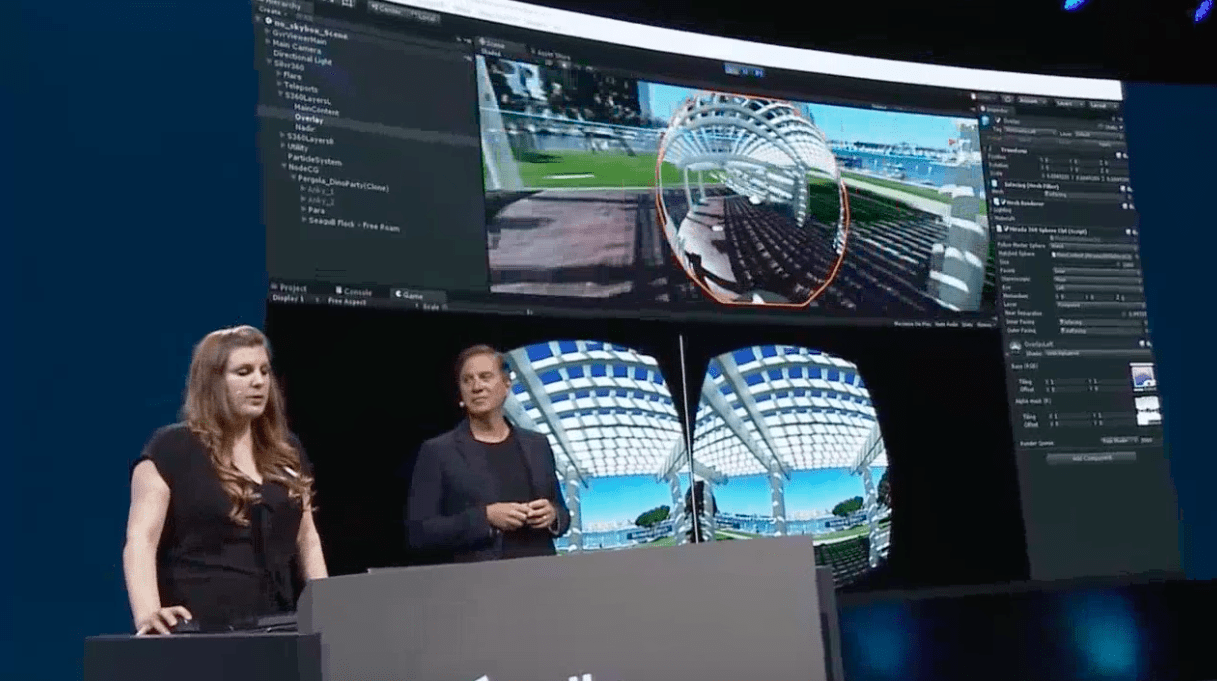 Натали Грант (Natalie Grant), старший менеджер по маркетингу Unity по дополненной, виртуальной реальности и видео, использовала сцену Vision VR/AR Summit 2017 для презентации совмещения 360-градусного видео с компьютерной графикой при создании интерактивных роликов. Функция уже работает в бета-версии Unity и вскоре появится в стабильной сборке движка.