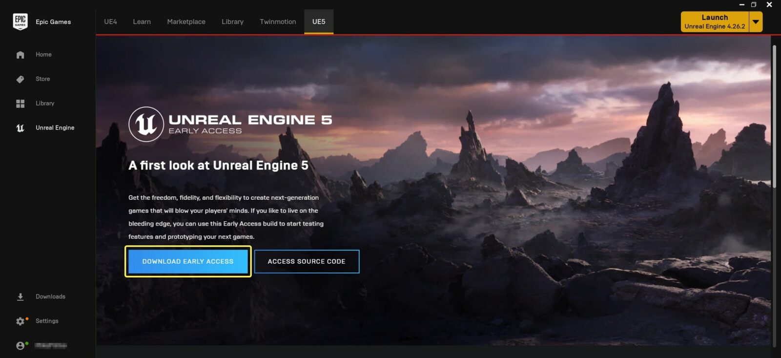 Разработчики могут загрузить раннюю версию Unreal Engine 5 уже сегодня через клиент Epic Games. Для этого зайдите в пункт меню «Unreal Engine» слева и скачайте раннюю версию движка.