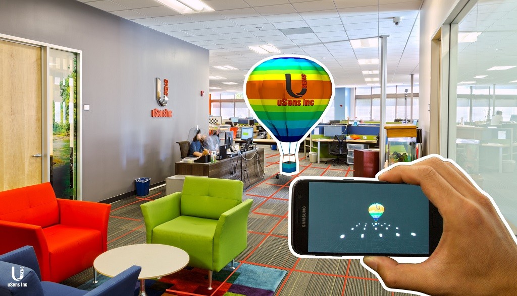 Специальный алгоритм uSens создаёт виртуальную карту окружения без необходимости в маркерах. Затем эту среду можно настроить, добавив в неё цифровой контент. Фактически, это универсальное решение, чтобы отслеживать положение человека в виртуальном мире без внешних датчиков, таких, как в комплектах Rift или Vive, и создавать качественную дополненную реальность в мобильных очках виртуальной реальности.