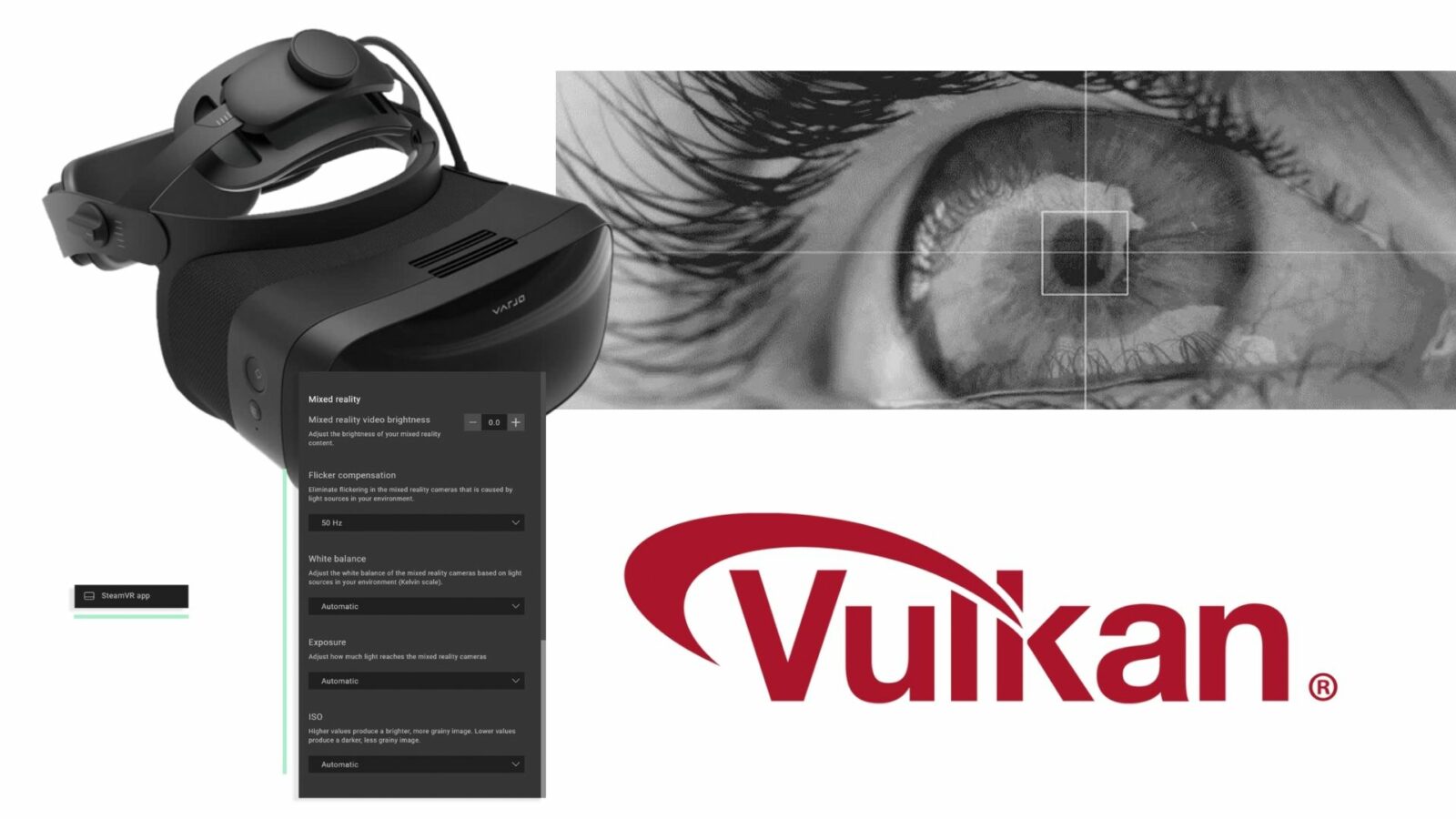 Улучшенный пользовательский интерфейс Varjo Base — специалисты компании постарались повысить интуитивность. Новая специальная кнопка позволяет запускать всплывающее окно SteamVR непосредственно из интерфейса Base, упрощая доступ к настройке комнаты, подключению контроллеров и прочему. Дизайнеры пересмотрели порядок настроек камеры XR-3 (ISO, баланс белого и так далее) в соответствии логике популярного программного обеспечения для редактирования фото и видео.