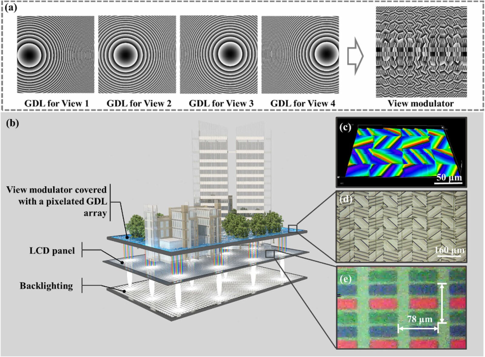 Авторы проекта разработали новую дифракционную плоскую линзу, нанеся наноструктуры на плоскую поверхность для фокусировки света. Сочетание нескольких линз позволило создать оптический пиксельный модулятор, который создаёт изображение с различными перспективами. Например, 3D-дисплей может использовать четыре таких линзы, каждая из которых будет собирать свет для своей перспективы.