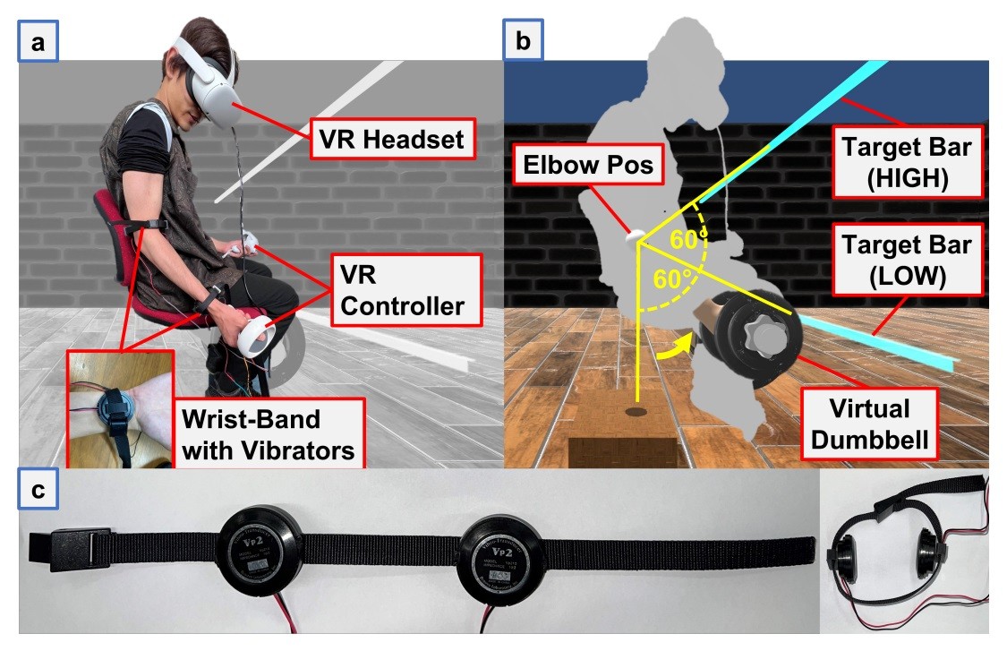 Воздействовать на соматосенсорную систему учёные под руководством Ютаро Хирао (Yutaro Hirao) из Токийского университета предлагают с помощью широко распространённой в компьютерных интерфейсах вибрации. Но в новых местах: на запястьях и локтевых суставах. Согласно гипотезе, закреплённые там ремешки с вибромоторами на частоте 80 герц могли бы заглушить корректировку визуальных данных соматосенсорными, чтобы усилить изменение веса с нынешних нескольких процентов.