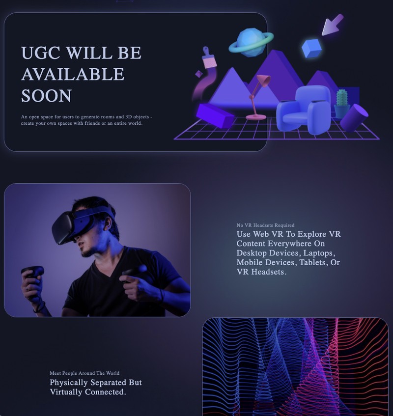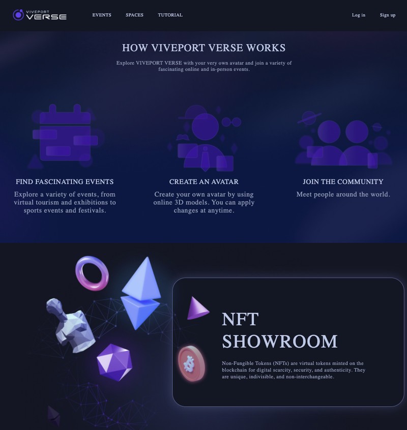 HTC также может сделать ставку на интеграцию с социальным ВР-сервисом под названием «Viveport Verse». Согласно сайту проекта, который уже недоступен, но с которого успели снять скриншоты, пользователи смогут создавать свои 3D-аватары и принимать участие в различных событиях. Там будут «демонстрационный зал NFT» и возможность создавать (или загружать) пользовательский контент. Для посещения Viveport Verse не обязательно будет владеть очками: кроме них, проект совместим с компьютерами, смартфонами и планшетами.