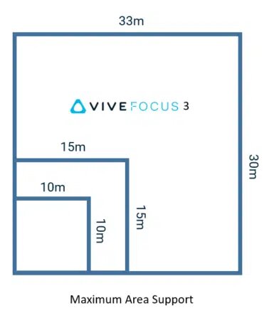 Focus 3 — это автономные очки виртуальной реальности HTC, предназначенные для бизнеса, с высокой ценой в $1299 и достойными характеристиками. До сих пор максимальное игровое пространство составляло 15×15 метров, как у Meta Quest 2 после июньского обновления. Теперь же полезную область расширили до площади 33×30 метров.
