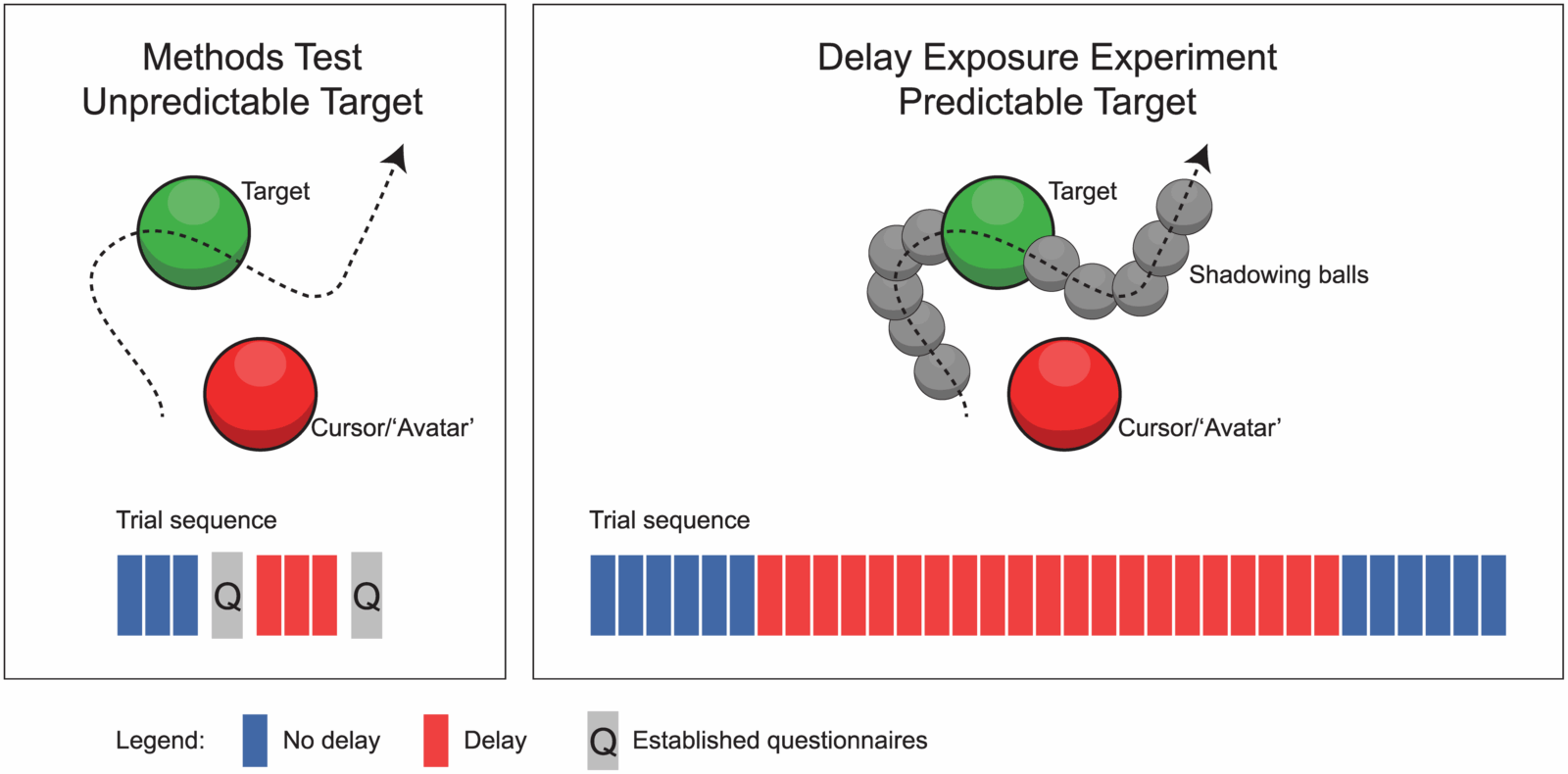 Участники выполняли задачу отслеживания целей в виртуальной реальности. Аппаратура измеряла показатели пространственных и временных ошибок, которые допускали люди с искусственными задержками и без них. Опросники помогли понять, что субъективные оценки переживаемых пользователями ощущений довольно точно соответствуют данным с датчиков. Чем дольше пользователи подвергались воздействию задержки, тем лучше они адаптировались к ней и тем лучше справлялись с испытанием.