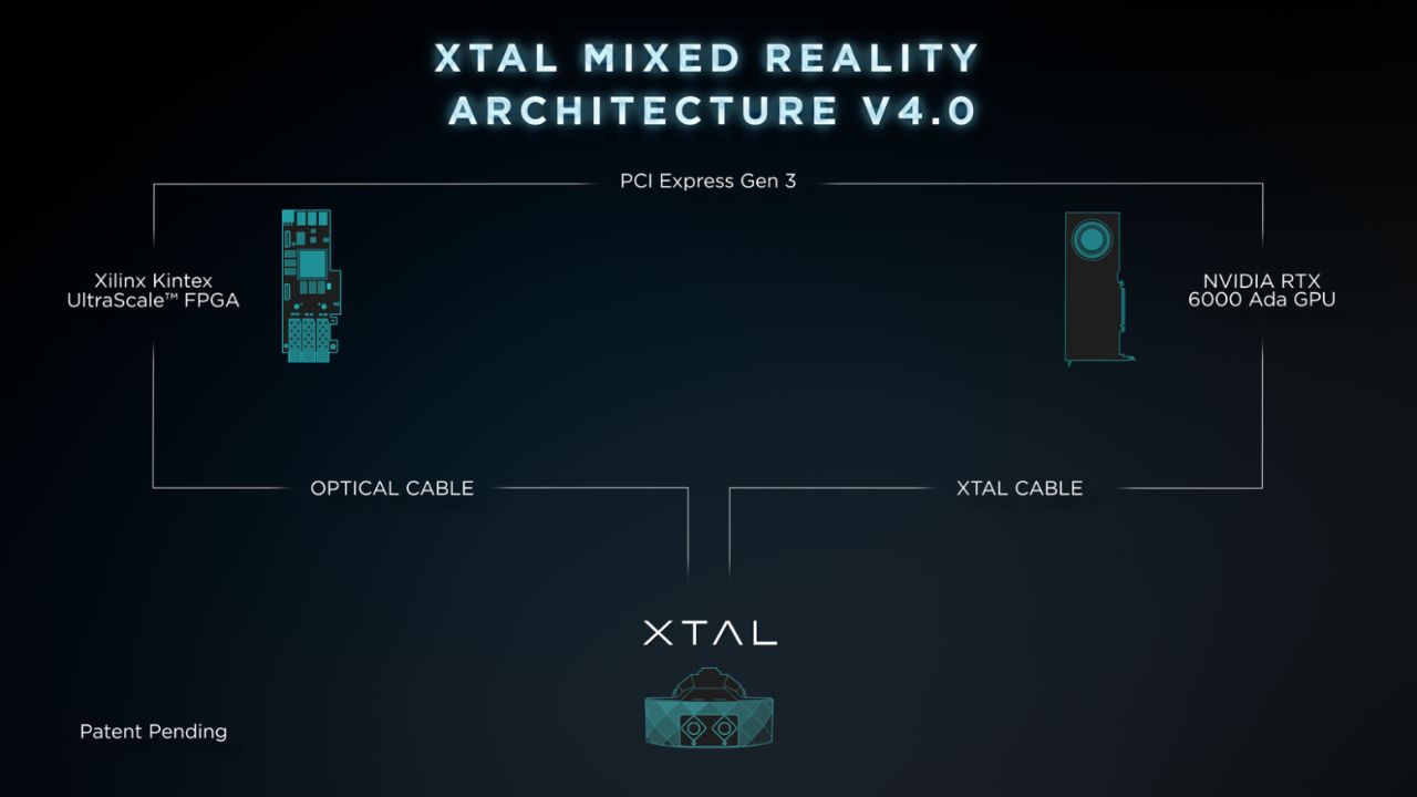 В очках работают 24-мегапиксельные датчики изображения, подключаемые к карте с программируемыми вентильными матрицами Xilinx Kintex UltraScale с PCIe 16x через оптические кабели (Xilinx под контролем AMD). Этот процессор предназначен для расчёта кадра смешанной реальности высокого разрешения всего за одну миллисекунду, а прямое соединение с графическим ускорителем NVIDIA Quadro RTX A6000 обходит центральный процессор, сокращая общую задержку до минимума. В результате Quadro RTXA600 направлена только на вычисления для очков, что должно экономить ресурсы и повышать целевую производительность.