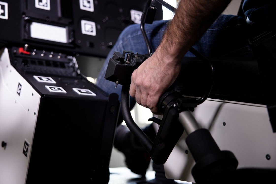 Контрастные графические маркеры на панелях тренажёра помогают правильно позиционировать интерфейс относительно кокпита.