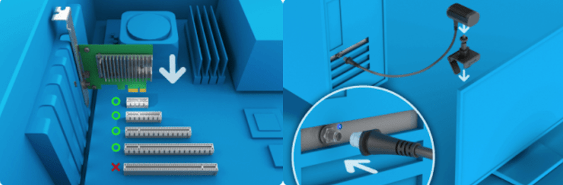 Беспроводной передатчик Vive, отправляющий видео- и аудиосигналы по беспроводной сети на шлем, требует дополнительную карту WiGig формата PCIe, которую необходимо установить в компьютер, поскольку вы вряд ли найдёте в своём ПК поддержку этого стандарта связи. К карте подключается комплектная внешняя антенна.