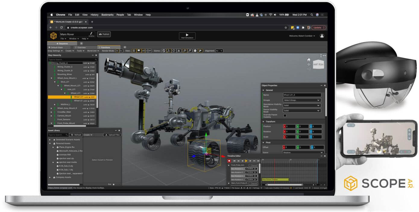 С 2010 года Scope AR продаёт предприятиям возможность просмотра 3D-моделей в дополненной реальности для обучения и дистанционного сотрудничества. Её новая веб-платформа «WorkLink Create» помогает клиентам создавать контент на основе моделей САПР в обход Unity. Это должно сделать продукты компании более доступными для заказчиков без специальных технических навыков и доступа к разработчикам.