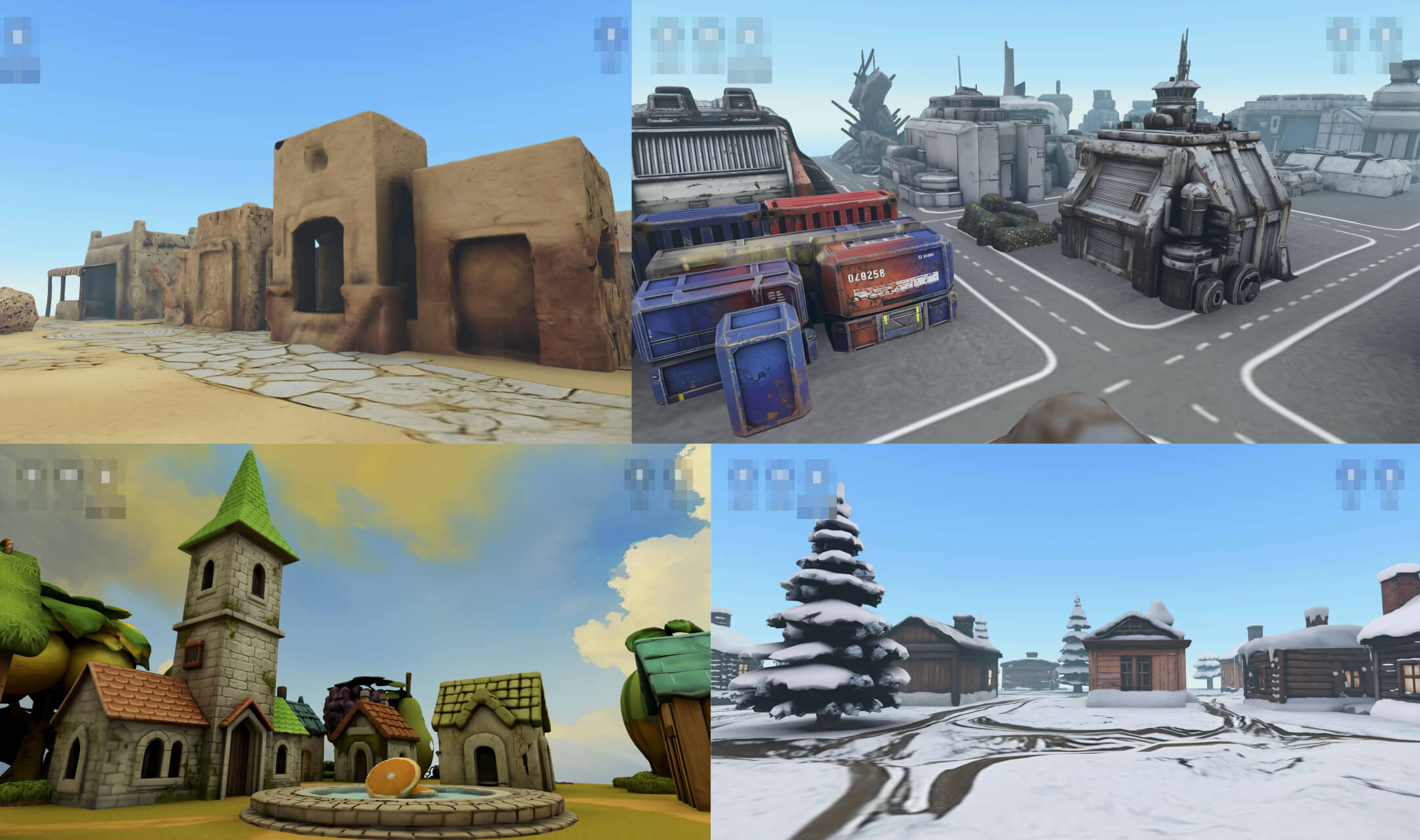 Большие открытые миры, охватывающие километры, изначально не поддерживаются и потребуют генерации и сшивания нескольких локальных областей, что может привести к неплавным переходам или визуальным артефактам на границах областей. Единый вид также ограничивает возможность моделирования многослойных сред, таких как многоэтажные подземелья или бесшовные переходы между интерьерами и экстерьерами. Наконец, поскольку каждый объект представлен независимо, без повторного использования геометрии или текстур, в больших насыщенных сценах станет проблемой эффективность рендеринга.