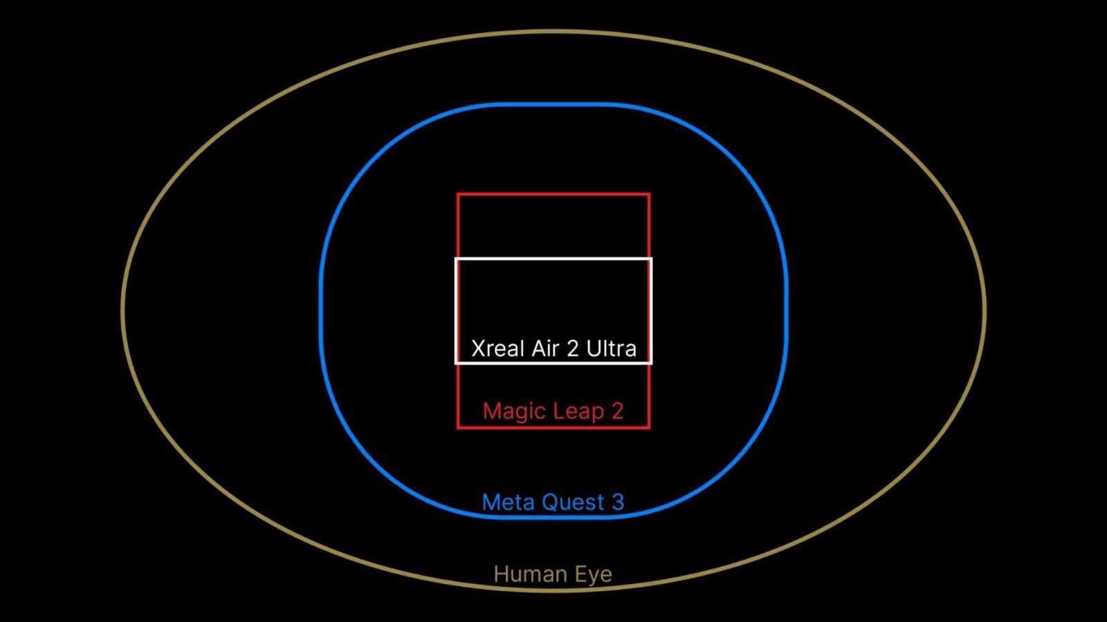Поле зрения оптики Air 2 Ultra немного больше, чем у других очков Air: 45×25° по сравнению с 40×22°. Оно в два и более раз меньше поля Quest 3 и подобных им очков смешанной реальности, но это связано с меньшими размерами гаджета. Это разные классы устройств.