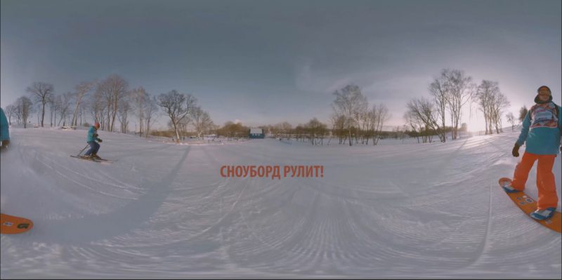 Один из наших роликов, промо-фильм для программы «Лыжи мечты», был сделан полностью в Premiere с использованием только 360/VR Tools. Работа, конечно, простая, но всё равно довольно хорошо показывает, как легко можно сделать приятное и интересное видео: