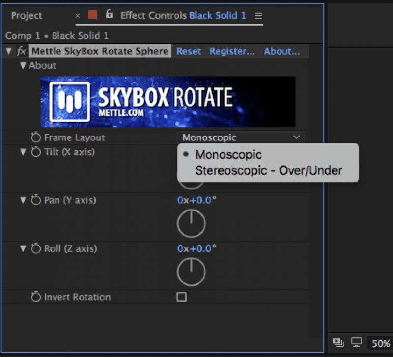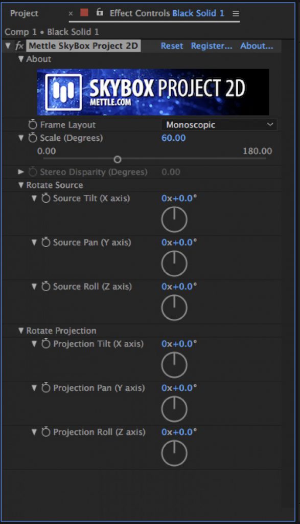 Mettle Skybox Studio — плагин для работы с After Effects, позволяющий легко ориентироваться в вашем 360-градусном материале и работать с ним: титры, логотипы, графика, спецэффекты, clean up (чистка штатива и лишних элементов), трэкинг и компоуз 3D- и 2D-объектов в удобном интерфейсе c привычными 3D-плагинами (Plexus, Trapcode Particular и Form, Video Copilot Element 3D и другими), причём как для моноскопического материала, так и для стереоскопического.
